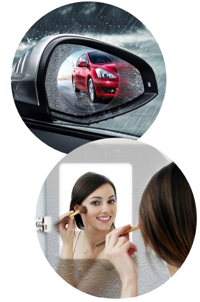 жилые дома, офисы, торговые центры, спортивные сооружения, зеркала и стекла автомашин, визор в защитном шлеме (мото, пейнтбол и др.)
